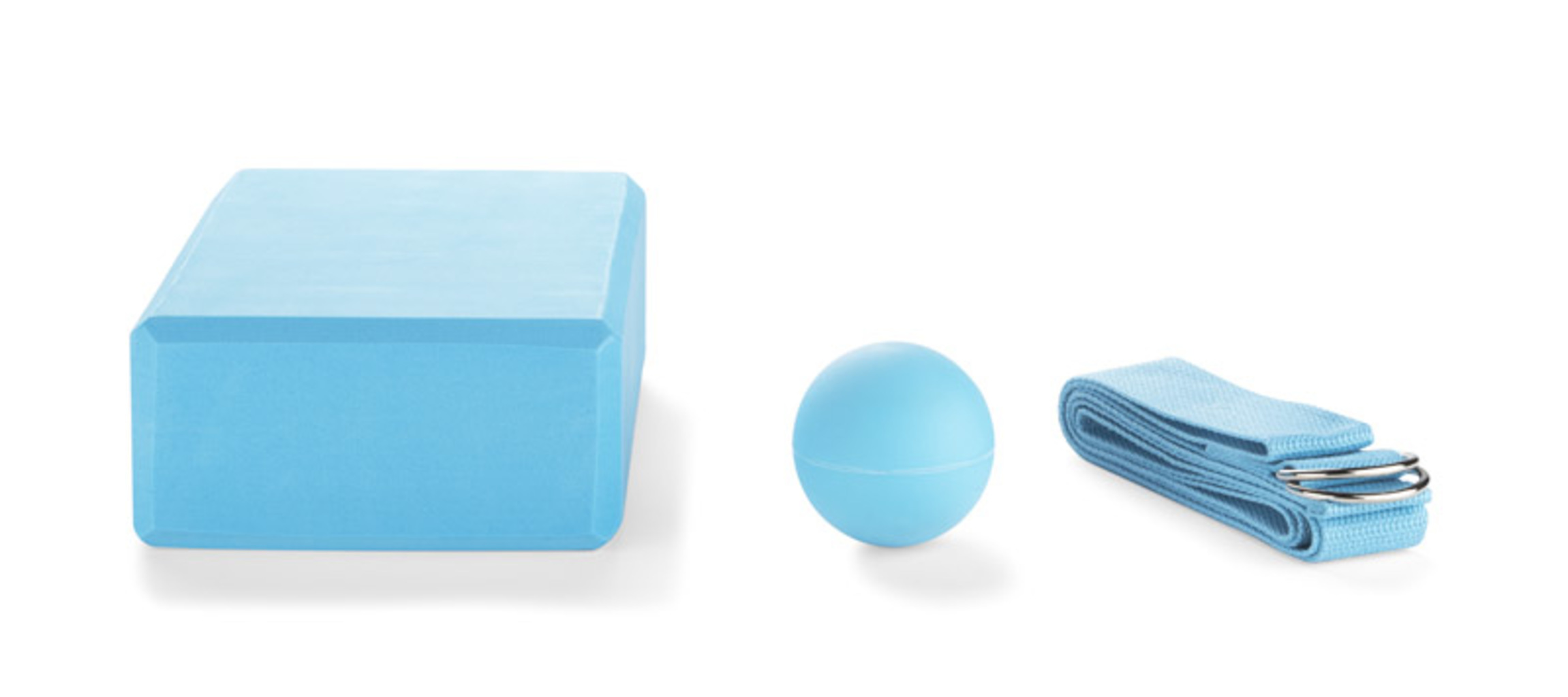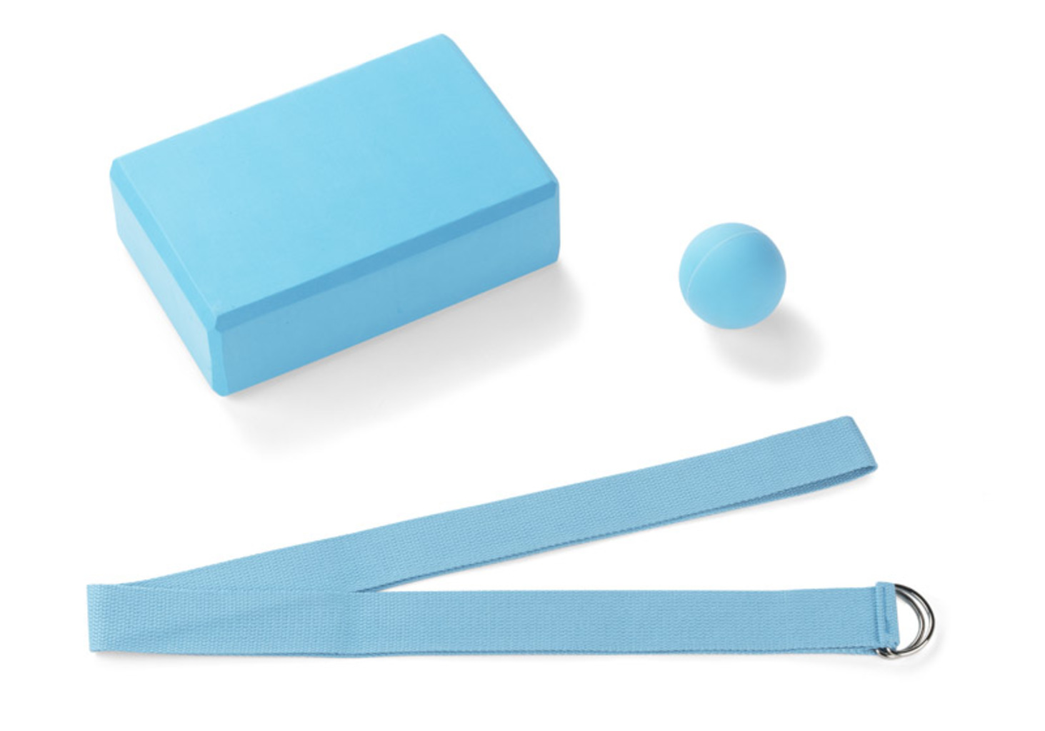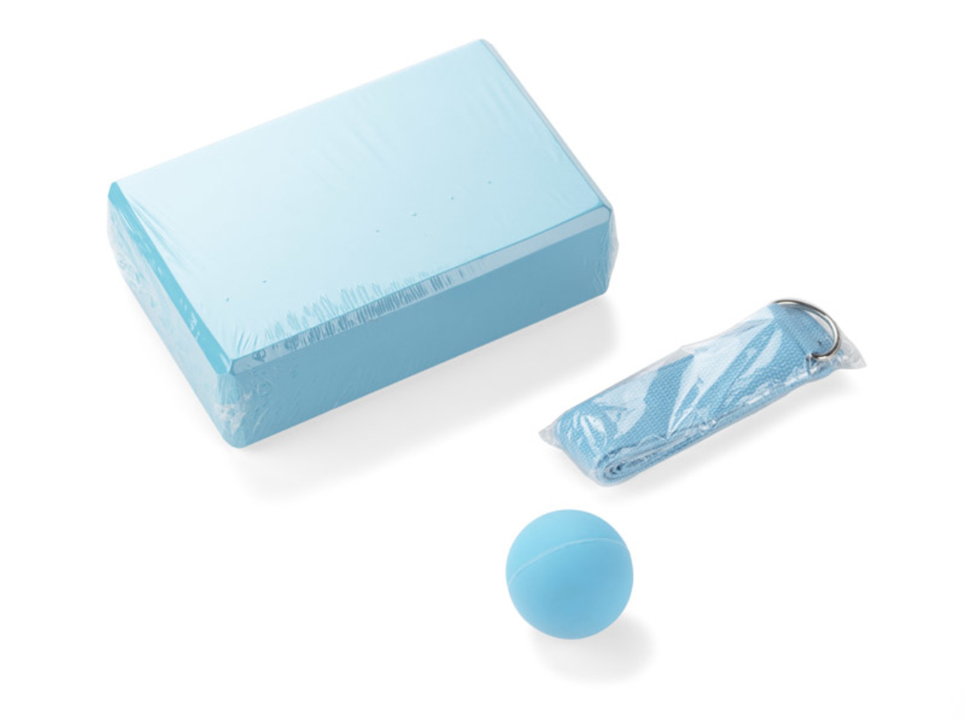 "Sada na jógu NAMASTE se skládá ze 3 prvků: blok na jógu, opasek a míč. Použití prvních dvou prvků umožňuje lepší a přesnější protažení těla při provádění i těch nejjednodušších cviků. Míč připevněný k soupravě vám pomůže masírovat jakékoli napětí. Jóga má na naše tělo velmi příznivý účinek, díky němu můžete svaly posilovat a protahovat.
