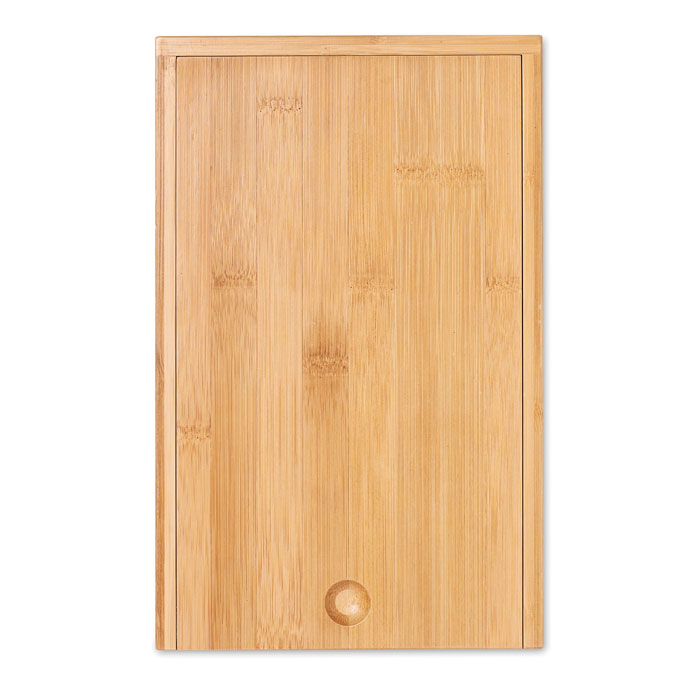 Bambusová sada na sýry a víno. Obsahuje ocelový nůž, škrabky na sýr, otvírák z nerezu a zátku na víno. Baleno v bambusové krabičce. Bambus je přírodní materiál, může dojít k mírným změnám barvy, dekorace a velikosti.