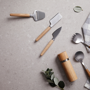 Ideální dárek pro milovníky sýrů. Kompletní sada tří nožů na sýr, se kterými můžete krájet, tvořit plátky a hobliny, servírovat a roztírat všechny druhy tvrdých i měkkých sýrů. Tato stylová sada nožů na sýr má rukojeti z jasanového dřeva a čepele z nerezové oceli, které dodají styl vašemu pokrmu ze sýrů servírovaných na prkénku.