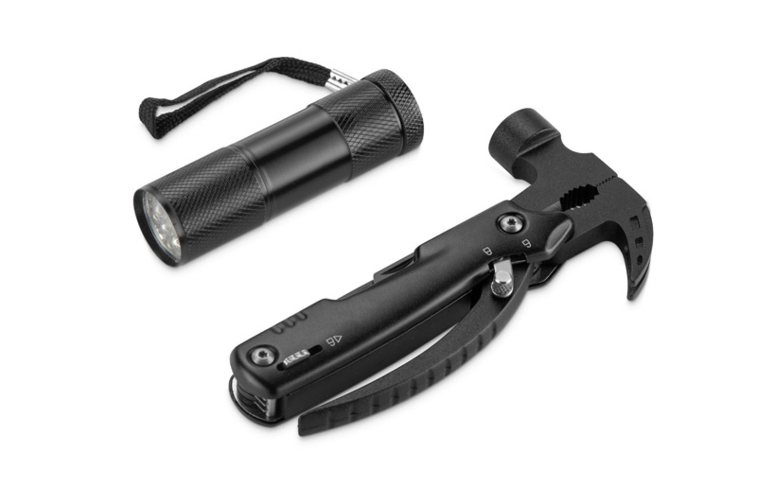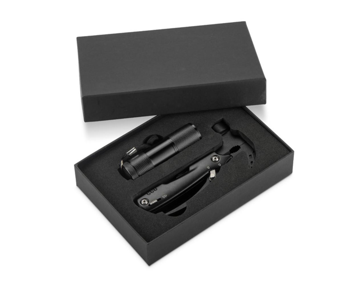 Sada nářadí ZAXO je praktickou kombinací svítilny a multifunkčního nářadí, která se vám bude hodit v různých situacích - doma, v dílně nebo na cestách. Multitool je vybaven potřebným příslušenstvím: kladivem, pilkou, nožem, křížovým šroubovákem, otvírákem na pivo, dvoubřitou pilkou a kleštěmi. Díky kompaktnímu tvaru jsou všechny nástroje vždy po ruce. Svítilna je užitečným doplňkem sady, který zvyšuje její univerzálnost. Celá sada je zabalena v kartonové krabici, díky čemuž je ZAXO také dobrou volbou pro praktický reklamní dárek.