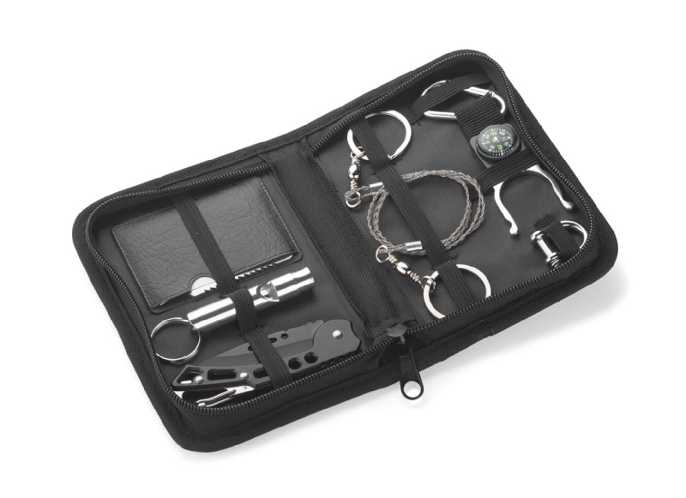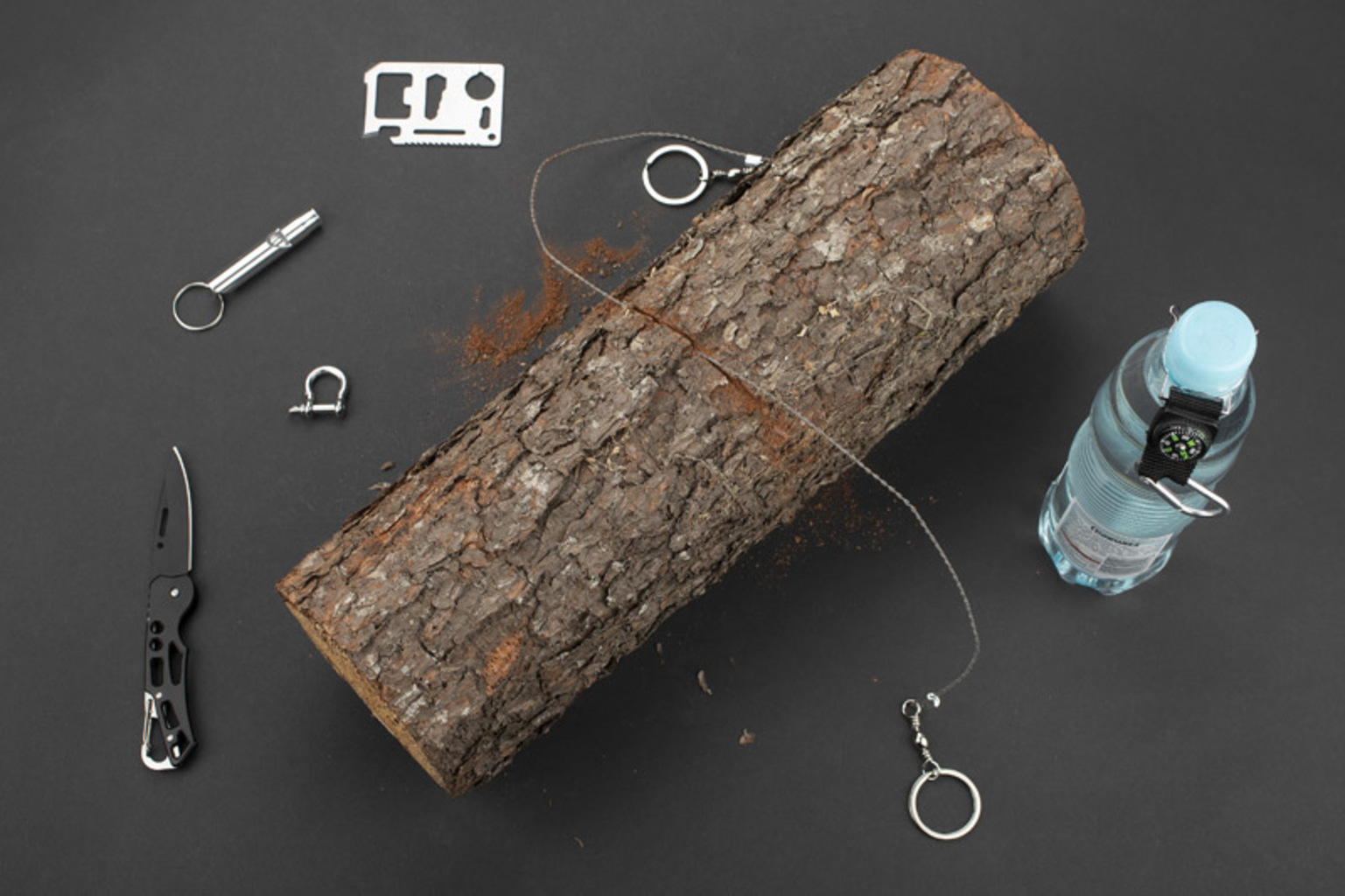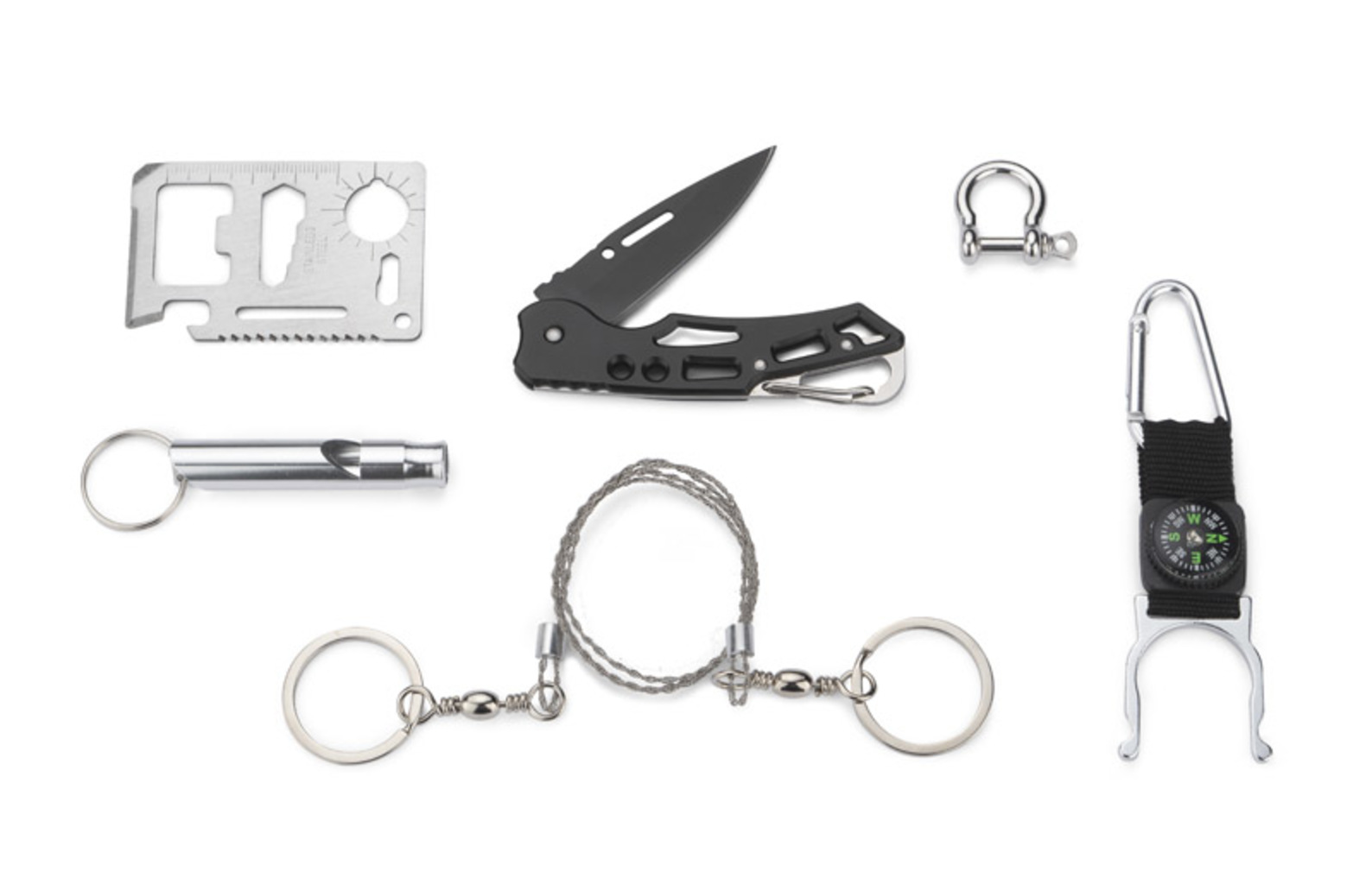 Outdoor sada BALE je lahůdkou pro milovníky přežití. V jedné sadě najdete vše, co bude dobře fungovat během mnoha výletů. Sada se skládá ze šesti prvků: držák na lahev s karabinou a kompasem, ruční řetězová pila, skládací nůž, píšťalka, plachetní poutko a karta pro survival s 11 funkcemi: otvírák na konzervy, lahve, šroubovák, pravítko 4 cm, čtyřpolohový klíč pro různé velikosti matic nebo šroubů, otvírák motýlů, dvouřadá pila, ukazatel mapy, dvoupolohový klíč a otvor na klíčenki na krk. Sada je zabalena v černém pouzdře.