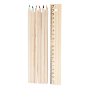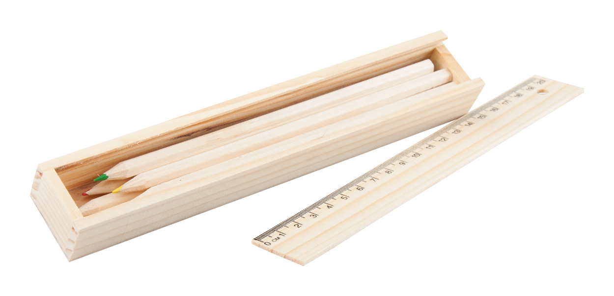 6-ti dílná sada pastelek v dřevěné krabičce s 20 cm pravítkem.