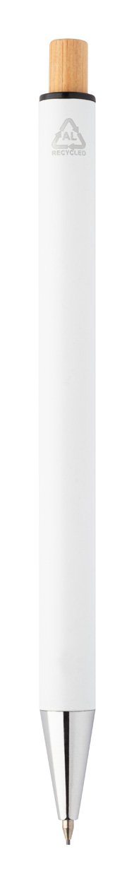 Sada pera z recyklovaného hliníku s kuličkovým perem a mechanickou tužkou s bambusovými knoflíky. S modrou náplní a 0,7 mm tuhy. V kraftové papírové krabici.