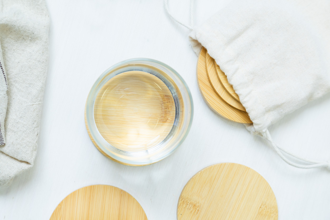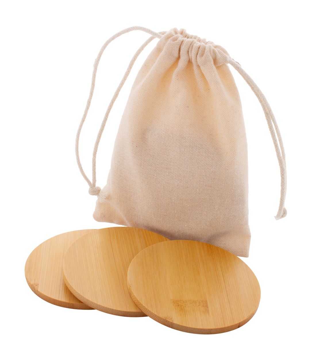 6dílná sada kulatých bambusových podtácků v bavlněném pytlíku se stahovací šňůrkou.