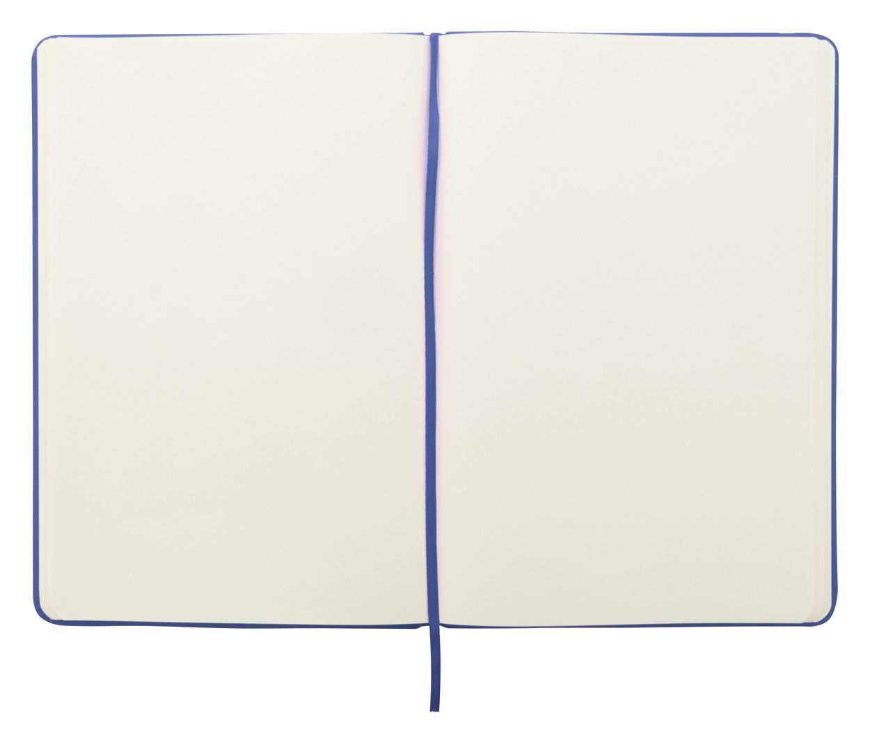 Sada s blokem s deskami z PU kůže se 100 čistými listy a stejně barevným plastovým kuličkovým perem s modrou náplní, v bílé dárkové krabičce.