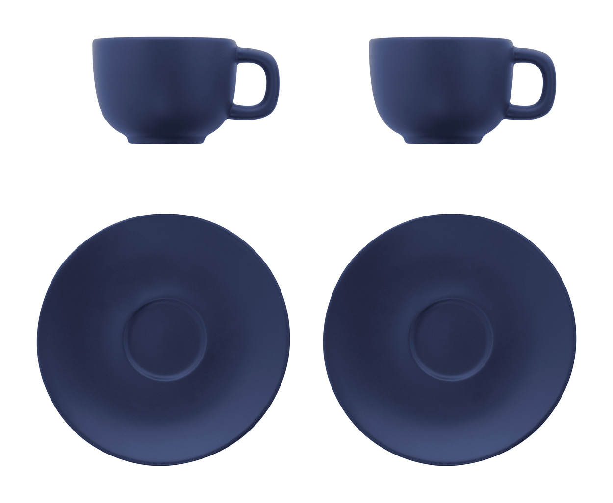 Vysoce kvalitní keramická sada šálků na cappuccino se 2 šálky a podšálky. S matnou vnější a lesklou vnitřní povrchovou úpravou. 200 ml. V kraftové papírové krabici.