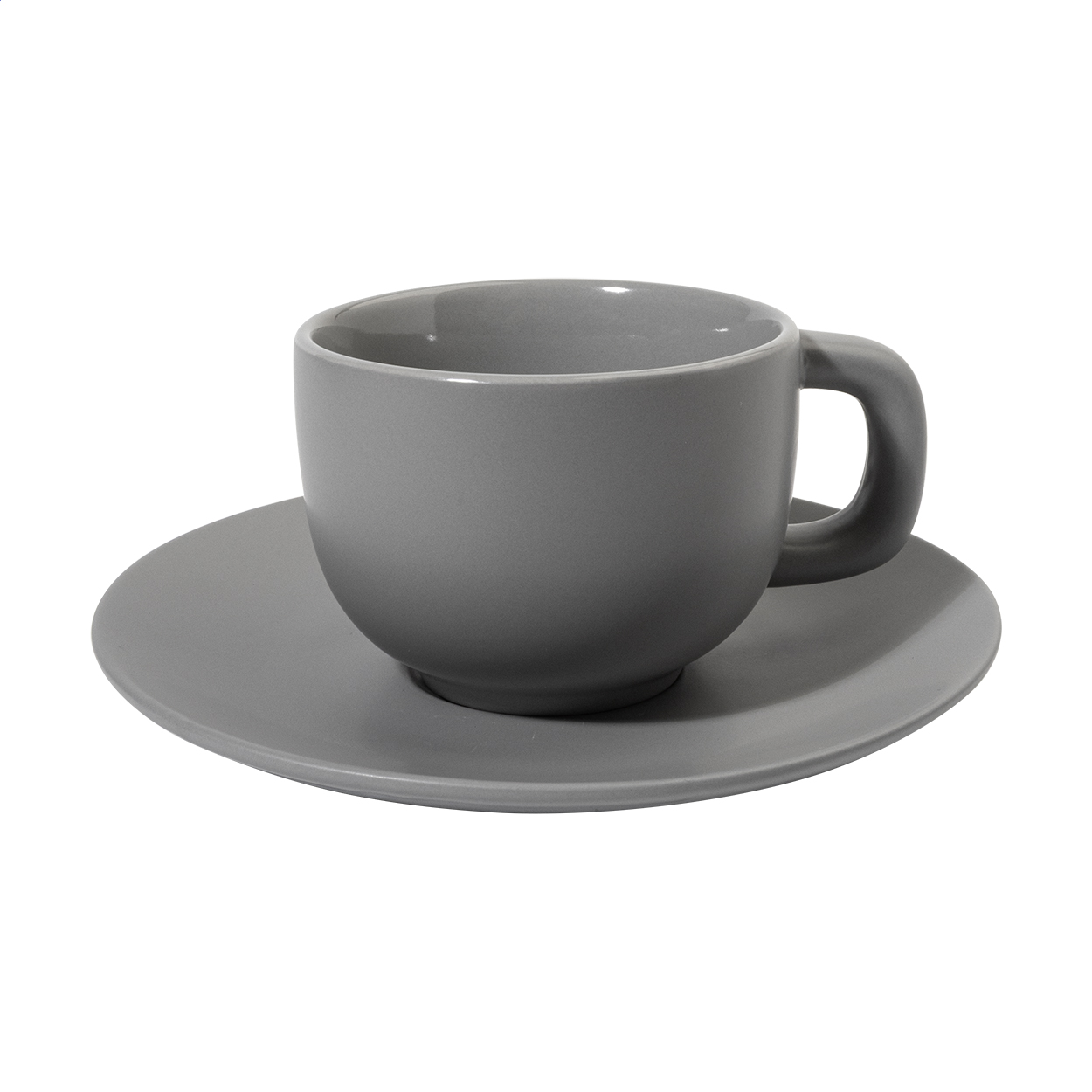 Vysoce kvalitní keramická sada šálků na cappuccino se 2 šálky a podšálky. S matnou vnější a lesklou vnitřní povrchovou úpravou. 200 ml. V kraftové papírové krabici.