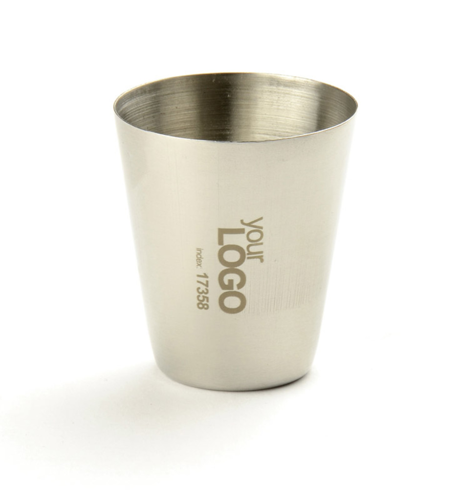 Čtyři ocelové sklenice o objemu 30 ml zabalené v koženkovém (PU) pouzdře na zip. Na povrch sklenic vygravírujeme vaše logo.
