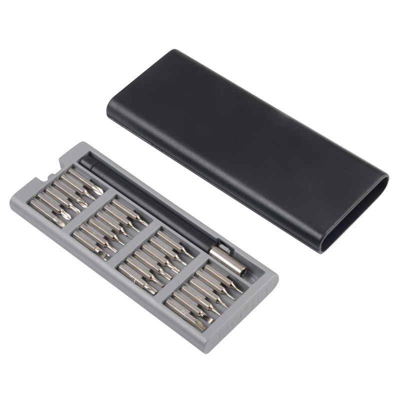 Sada šroubováků, 26 ks: včetně šroubováku a 24 různých bitů, v praktické krabičce s tlačítkem OPEN/CLOS.