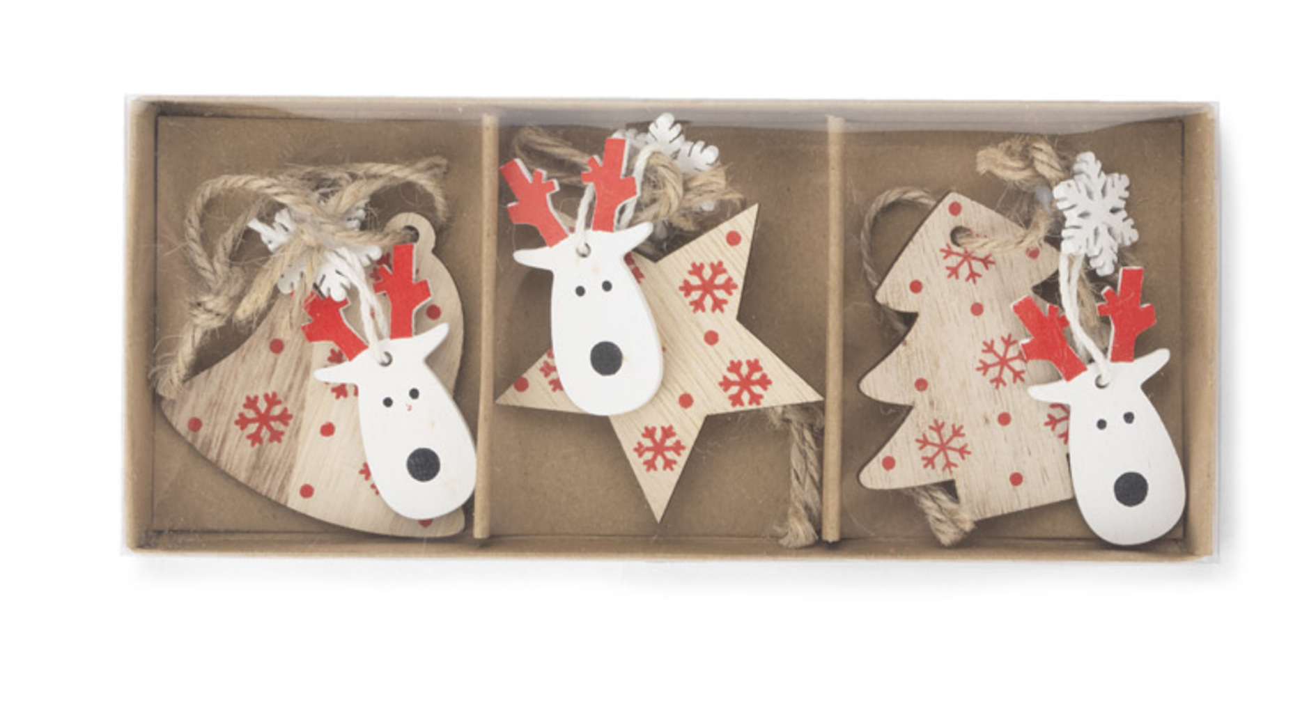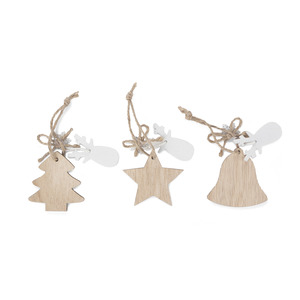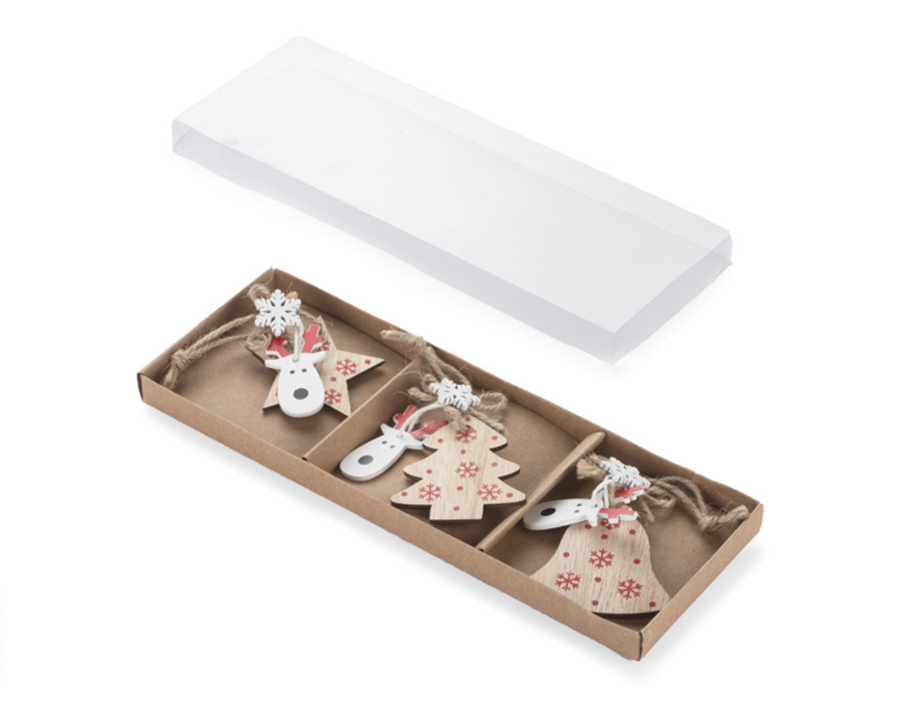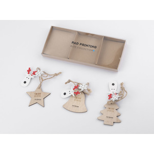 Sada FERI obsahuje 3 vánoční ozdoby různých tvarů: Zvonek, vánoční stromeček a hvězda. Dřevěné ozdoby perfektně zapadají do trendu ekologie a hodí se do každého interiéru.