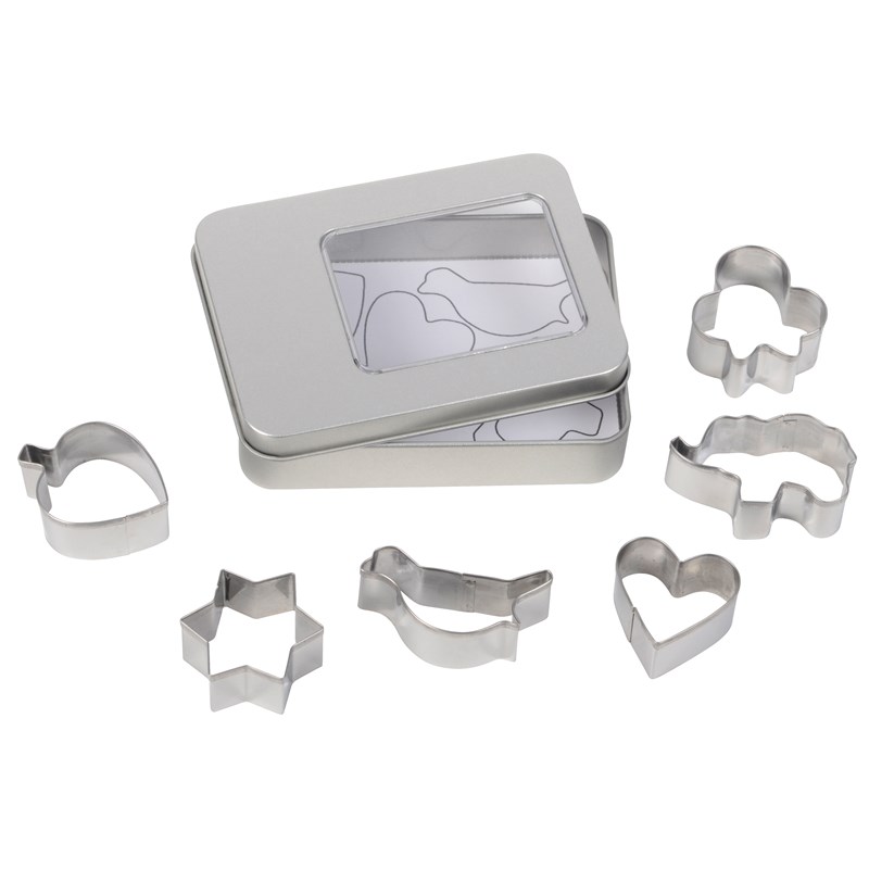 Sada vykrajovátek na sušenky/vánoční cukroví - 6 nerezových vykrajovátek s různými motivy - ideální na pečení sušenek, dodáváno v nerezové krabičce s průhledem.