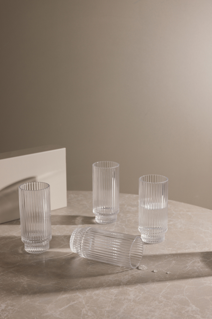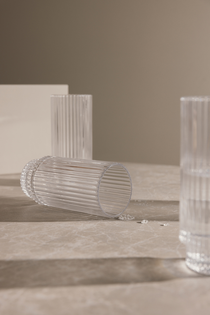 Objevte dokonalou rovnováhu mezi funkčností a elegancí s našimi vysokými sklenicemi. Nadčasový design s klasickými, čistými liniemi se hodí pro každou příležitost, kdy chcete servírovat osvěžující nápoje. Sklenice jsou vhodné do myčky a jejich stohovatelný tvar šetří místo při skladování. Vyrobeny ze sodnovápenatého skla. Objem 360 ml. Pouze na studené nápoje.