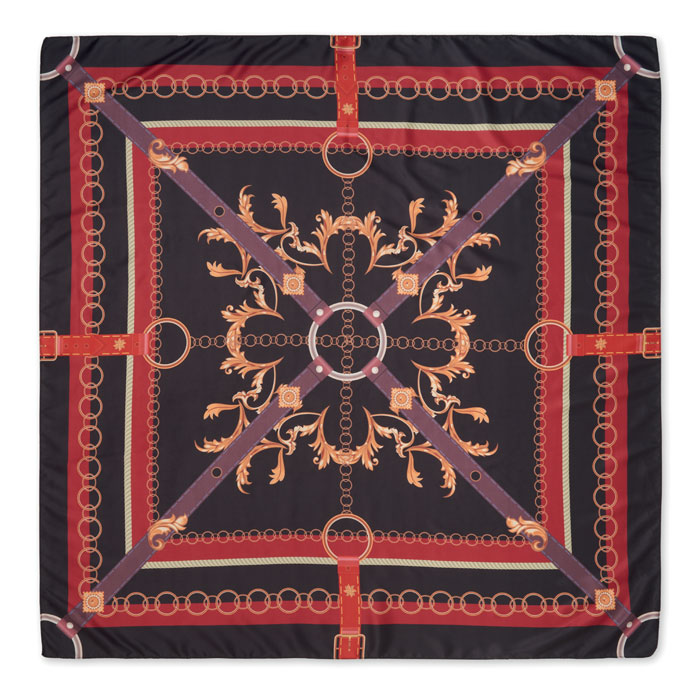 Šál z recyklovaného saténového polyesteru se vzorem.