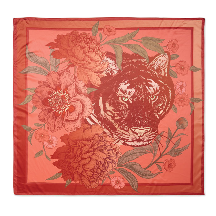 Šál z recyklovaného saténového polyesteru se vzorem.
