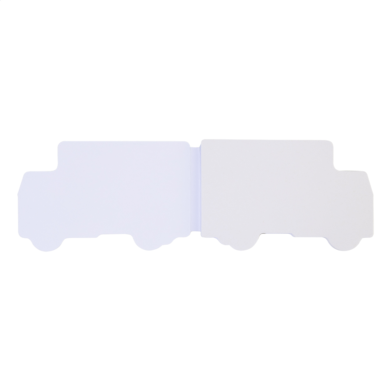 Samolepicí blok ve tvaru nákladního auta na zakázku, potažený papírem. Obsahuje 50 listů samolepících papírů z recyklovaného papíru. Cena zahrnuje vnější obal s plnobarevným potiskem, nezahrnuje tiskovou přípravu. Min. mn: 100 ks.