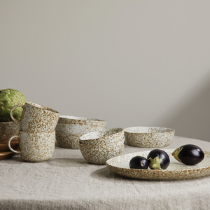 Kameninová servírovací mísa. Díky charakteristkým nerovným tvarům a ručnímu glazování je každý kus skutečný unikát, který každého zaujme. Pevná kamenina je dostatečně odolná pro každodenní použití. Vhodná do myčky nádobí. Není vhodná do mikrovlnné nebo pečící trouby.