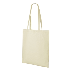 bavlněná tkaná taška střední gramáže, praktická a skladná, délka popruhů vhodná pro nošení v ruce i přes rameno, křížové prošití popruhů pro vyšší odolnost, rozměry tašky 45 x 40 cm, popruhy 70 x 2,5 cm