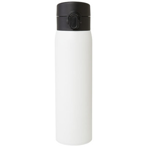 Stylová termoska z recyklované nerezové oceli s certifikací RCS a mechanismem snadného otevírání tlačítkem. Termoska je nepropustná a díky vakuové měděné izolaci nápoje vydrží horké nebo studené několik hodin. Objem je 450 ml. Dodává se v dárkové krabičce z recyklované lepenky.