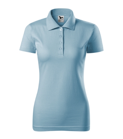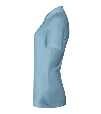 lehce vypasovaný střih s bočními švy, límeček z žebrového úpletu 1:1, úzká léga s 4 knoflíčky v barvě materiálu, vnitřní průkrčník začištěn páskou z vrchového materiálu, zpevnění ramenních švů páskou, silikonová úprava
