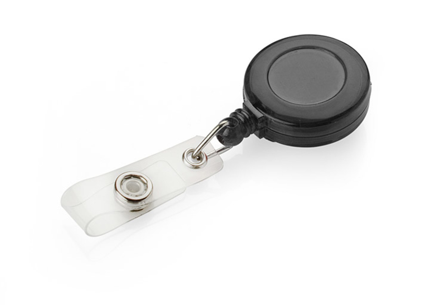 Plastická skipas s kovovou páčkou, šňůrka, na kterou můžete umístit odznak nebo jiný dokument.