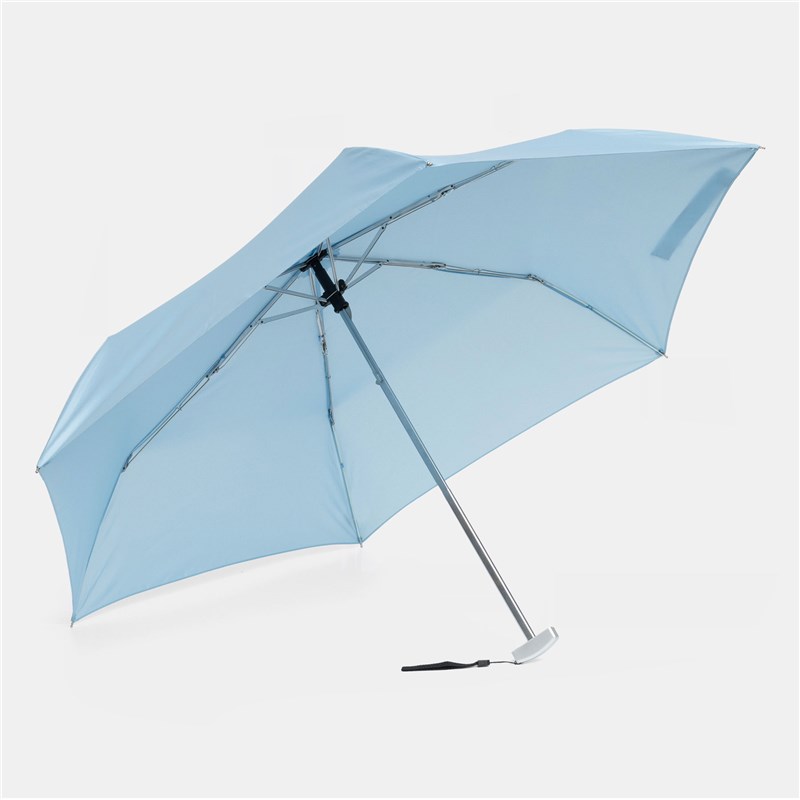 Super tenký mini kapesní deštník FLAT, 164 g lehká větruodolná kostra, 3sekční hliníková tyč, s hliníkovými žebry, sklolaminátovými konci a kovovými hroty, stříbrná rukojeť se stříškou z polyesterového ponže.