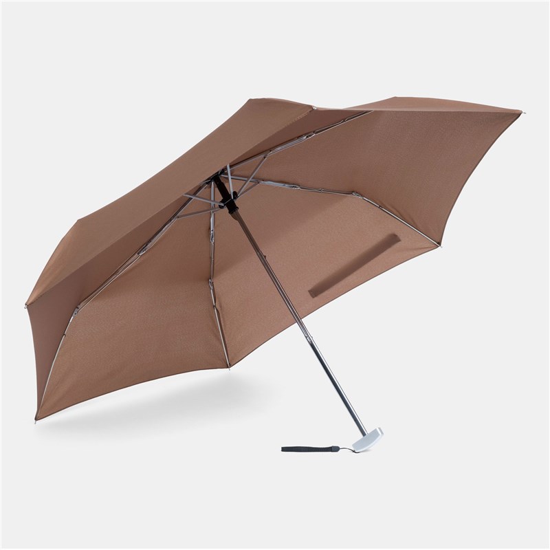 Super tenký mini kapesní deštník FLAT, 164 g lehká větruodolná kostra, 3sekční hliníková tyč, s hliníkovými žebry, sklolaminátovými konci a kovovými hroty, stříbrná rukojeť se stříškou z polyesterového ponže.
