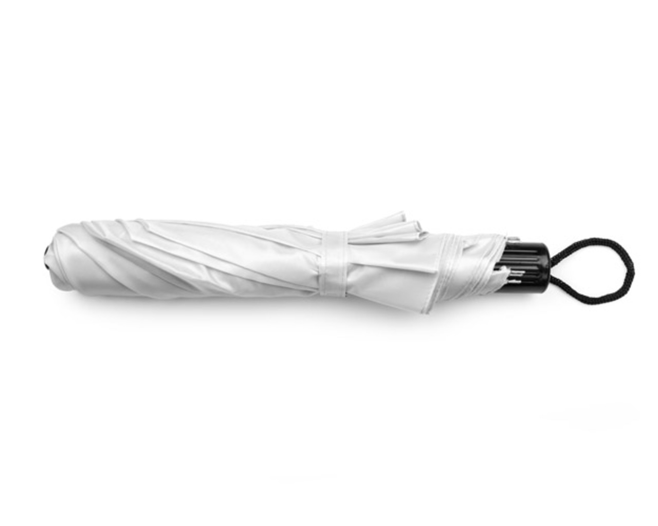 Skládaný, ruční deštník s pouzdrem a popruhem na ruku. Polyester 190T.