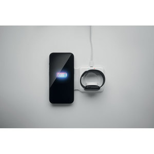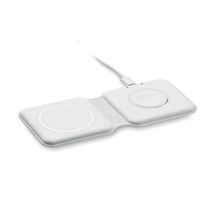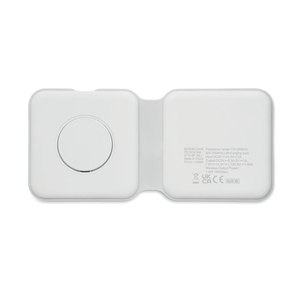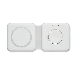 Skládací nabíjecí stanice 2v1 z ABS. Součástí je bezdrátová nabíječka 15W a nabíječka chytrých hodinek (pouze Apple®).