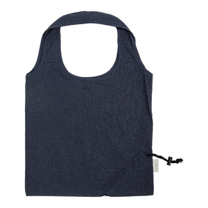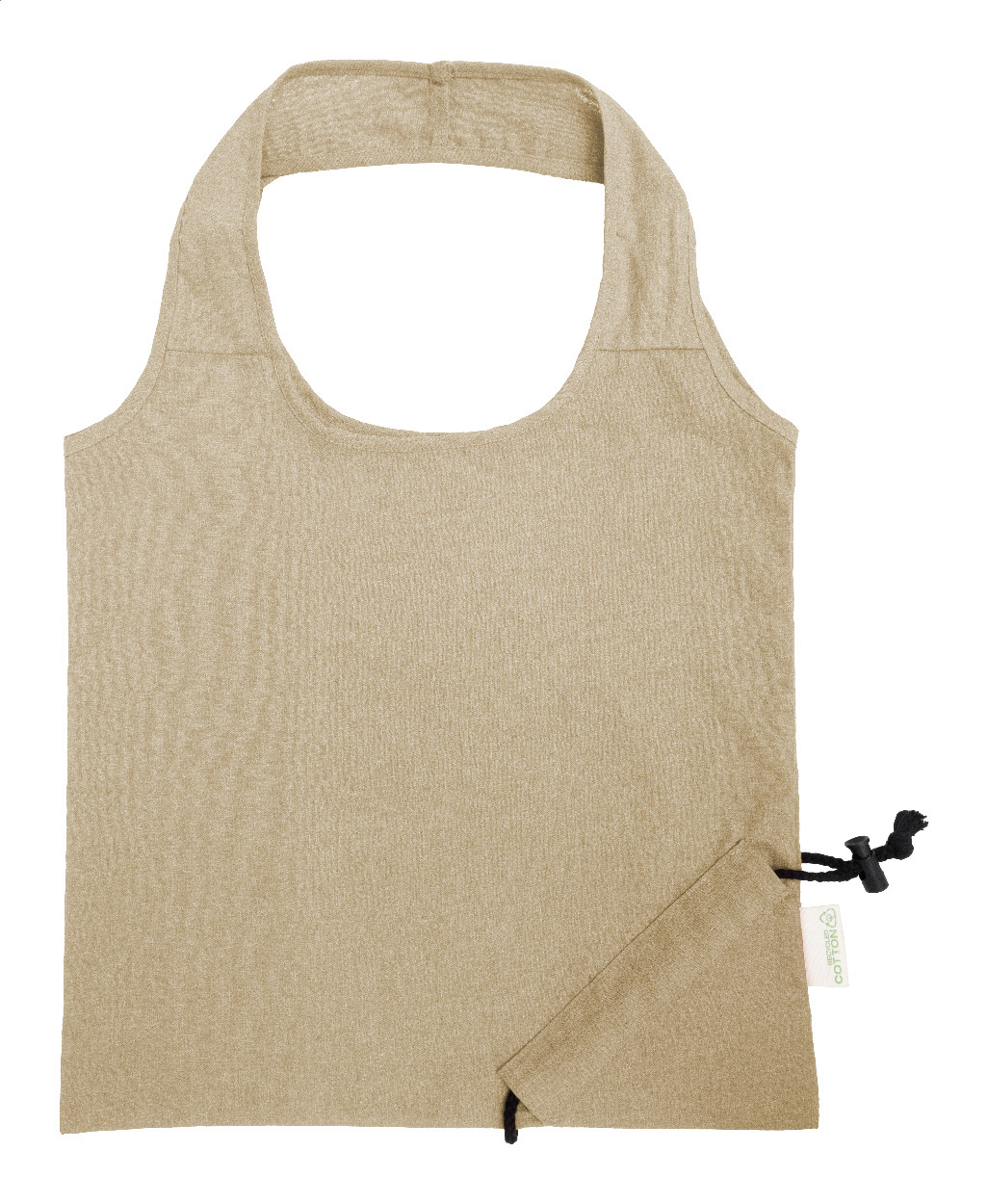 Skládací nákupní taška ze 70 % recyklované bavlny a 30 % polyesteru RPET, 140 g/m². S výrazným štítkem z recyklované bavlny.