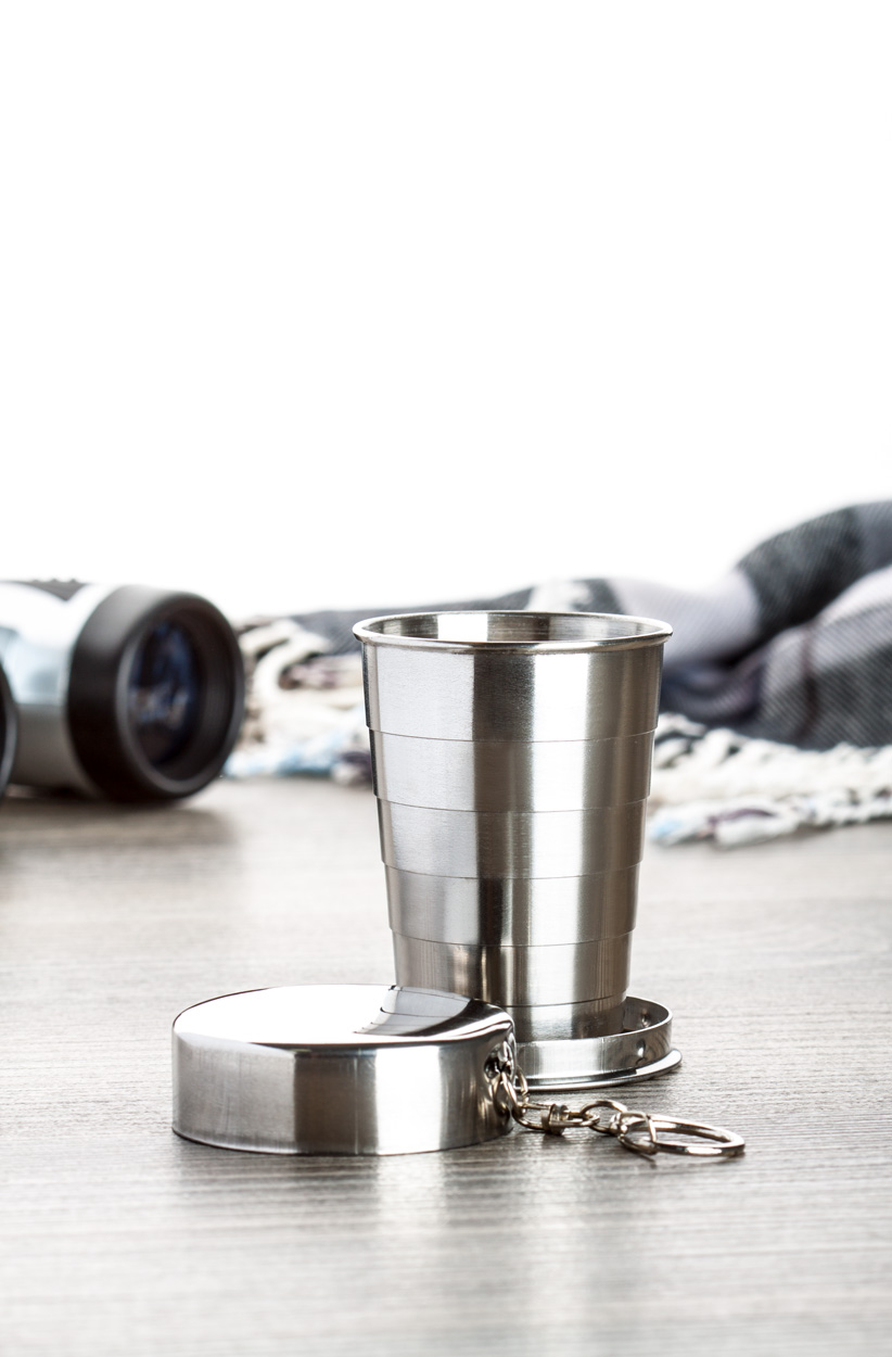 Skládací pohárek z nerezové oceli v pouzdře, 70 ml.