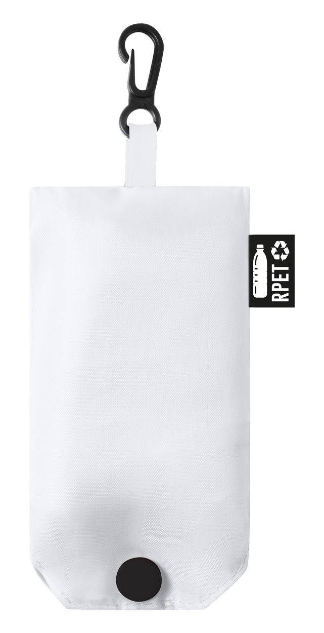 Skládací nákupní taška z RPET polyesteru, s etiketou s označením RPET.