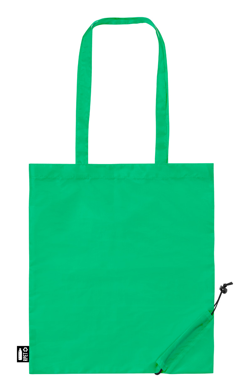 Skládací nákupní taška RPET s dlouhými uchy. Polyester 190T RPET, s výrazným štítkem RPET.