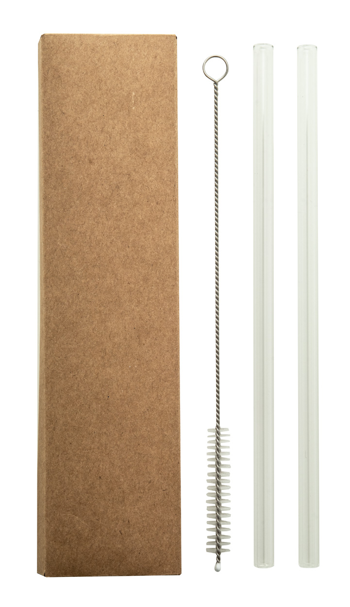 Sada 2 opakovaně použitelných brček na pití z borosilikátového skla a čisticího kartáčku. V papírové krabičce ze sulfátu.