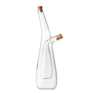 Láhev na olej a ocet z borosilikátového skla s korkovými zátkami. Vnější objem: 300 ml. Vnitřní objem: 80 ml. Korek je přírodní materiál, vzhledem ke své struktuře a povrchové pórovitosti může být výsledek tisku na stejných předmětech rozdílný.