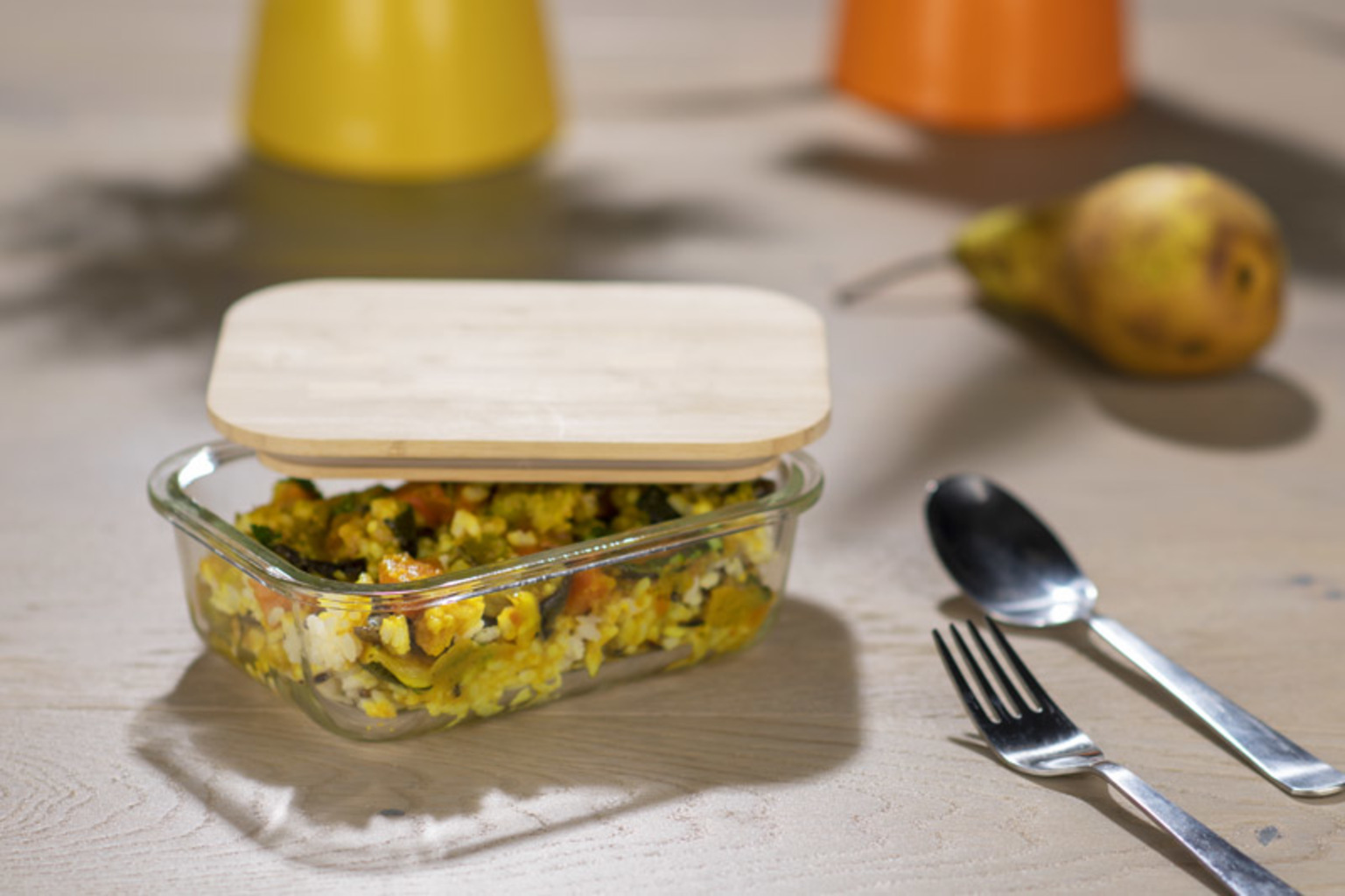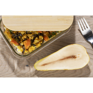 Dóza na potraviny ALVA je vyrobena z vysoce kvalitního borosilikátového skla. Nádoba má víko z přírodního bambusu.Lze ji použít jako nádobu na oběd nebo nádobu na uchovávání potravin a navíc v ní můžete ohřívat jídlo v troubě nebo mikrovlnné troubě. Objem 430 ml