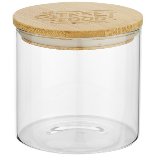 Malá krabička na potraviny ze skla s bambusovým víkem. Spojuje výhody skla, které je bezpečným a odolným materiálem, s obnovitelnými vlastnostmi bambusu. Skleněná nádoba (bez víka) je vhodná do mikrovlnné trouby a do myčky na nádobí. Baleno v krabičce z recyklovaného kraftového papíru. Kapacita: 320 ml.