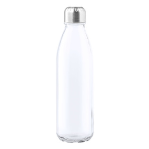 Průhledná skleněná sportovní láhev s uzávěrem z nerezové oceli, 650 ml. Nevhodné pro sycené nápoje.