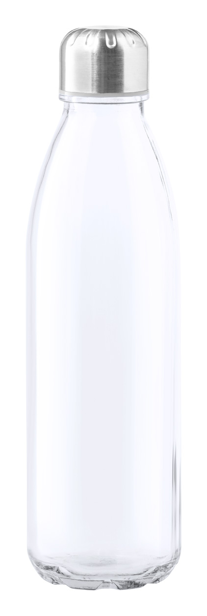 Průhledná skleněná sportovní láhev s uzávěrem z nerezové oceli, 650 ml. Nevhodné pro sycené nápoje.
