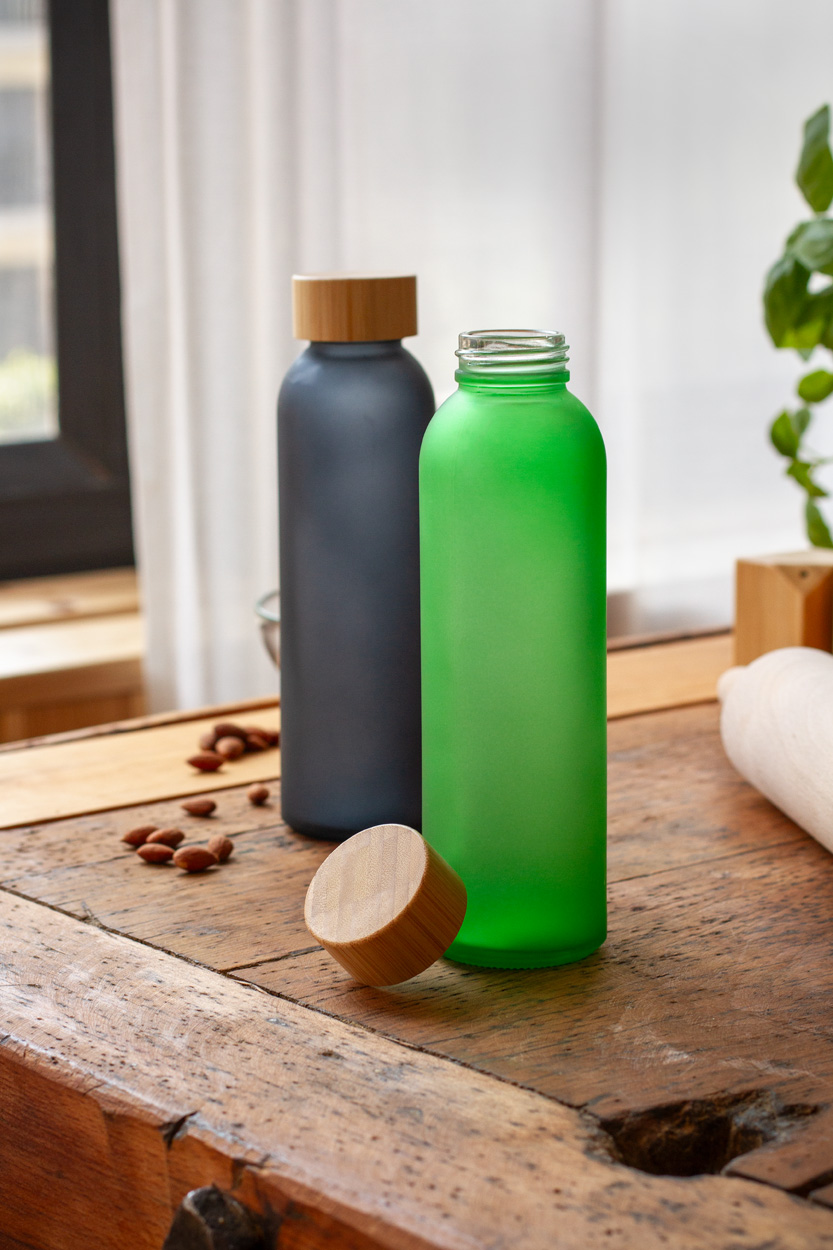 Sportovní láhev z matného skla s bambusovým uzávěrem, 500 ml. Nevhodné pro sycené nápoje.
