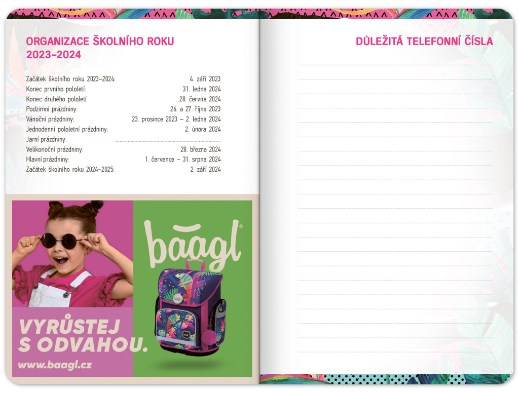Školní diář Fresh (září 2023 – prosinec 2024), 9,8 × 14,5 cm