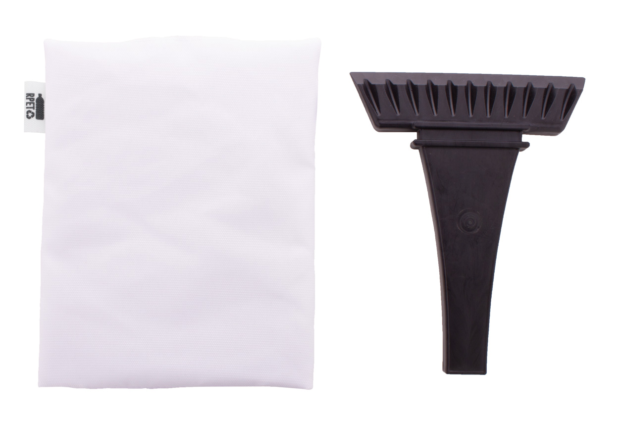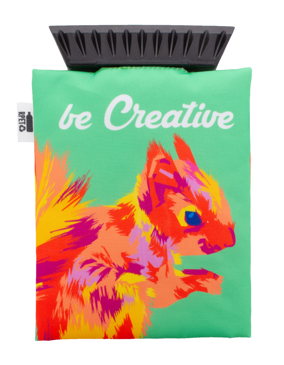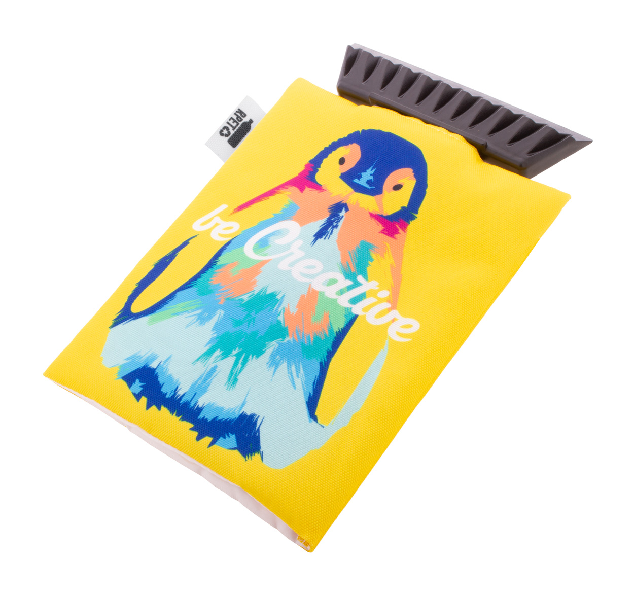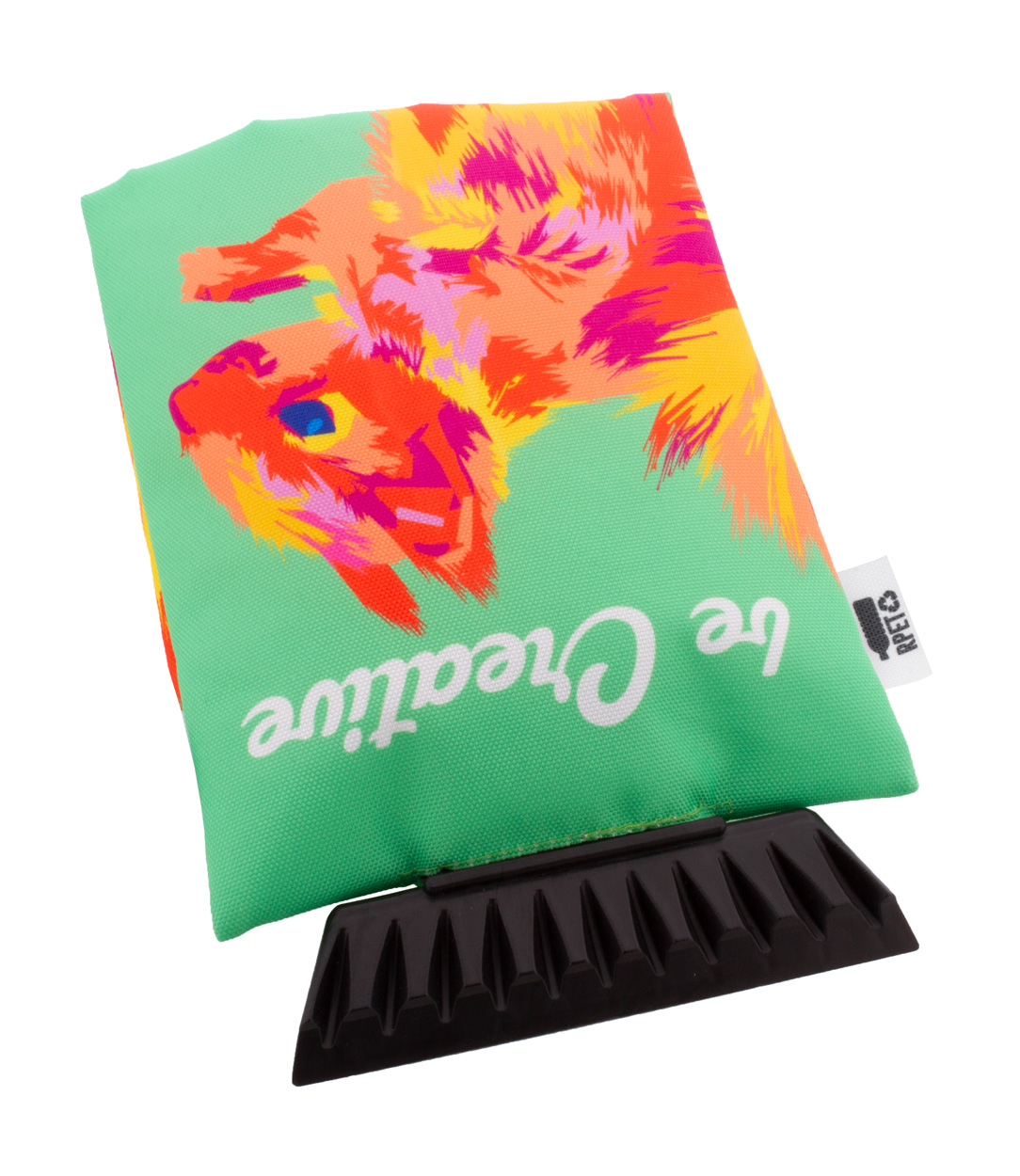 Plastová škrabka na led vyrobená na zakázku s polyesterovou rukavicí 600D RPET. Cena zahrnuje celoplošnou sublimační tištěnou grafiku, nezahrnuje tiskovou přípravu. Min. mn.: 50 ks.