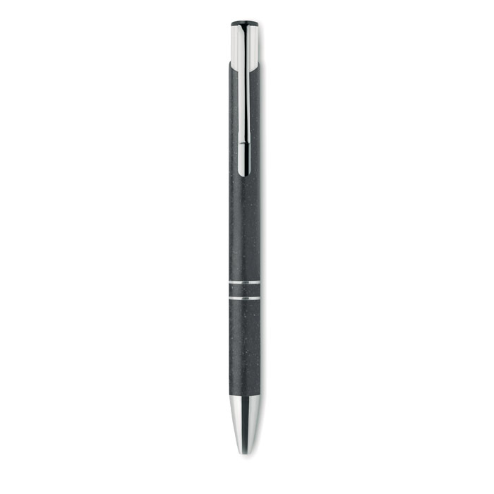 Propiska s modrým inkoustem z pšeničné slámy (50%) a ABS plastu (50%). Stříbrné doplňky.