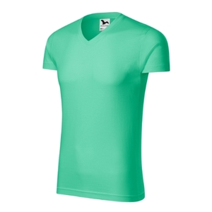 přiléhavý střih s bočními švy, hlubší výstřih ve tvaru V, úzký lem průkrčníku z žebrového úpletu 1:1 s 5 % elastanu, vnitřní část průkrčníku začištěna páskou z vrchového materiálu, zpevnění ramenních švů páskou, silikonová úprava