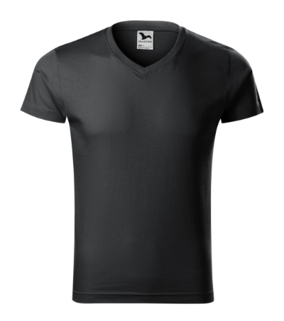přiléhavý střih s bočními švy, hlubší výstřih ve tvaru V, úzký lem průkrčníku z žebrového úpletu 1:1 s 5 % elastanu, vnitřní část průkrčníku začištěna páskou z vrchového materiálu, zpevnění ramenních švů páskou, silikonová úprava