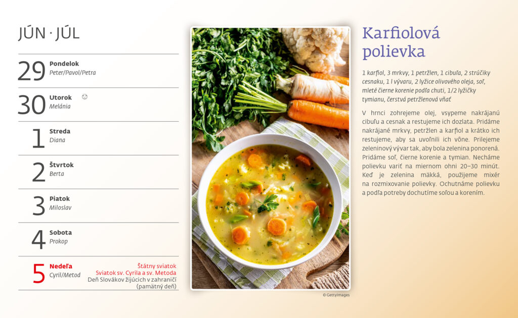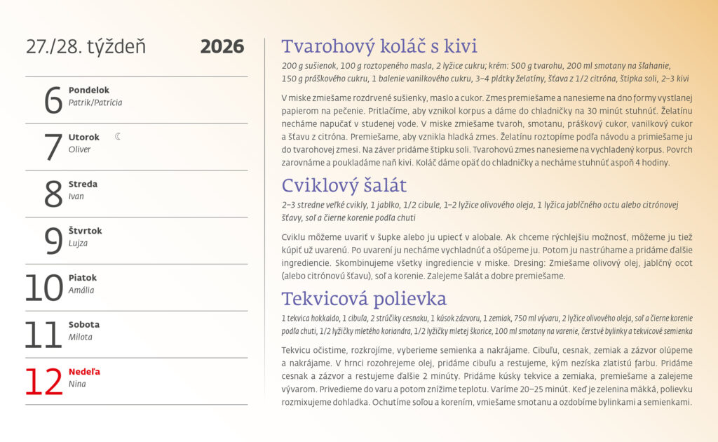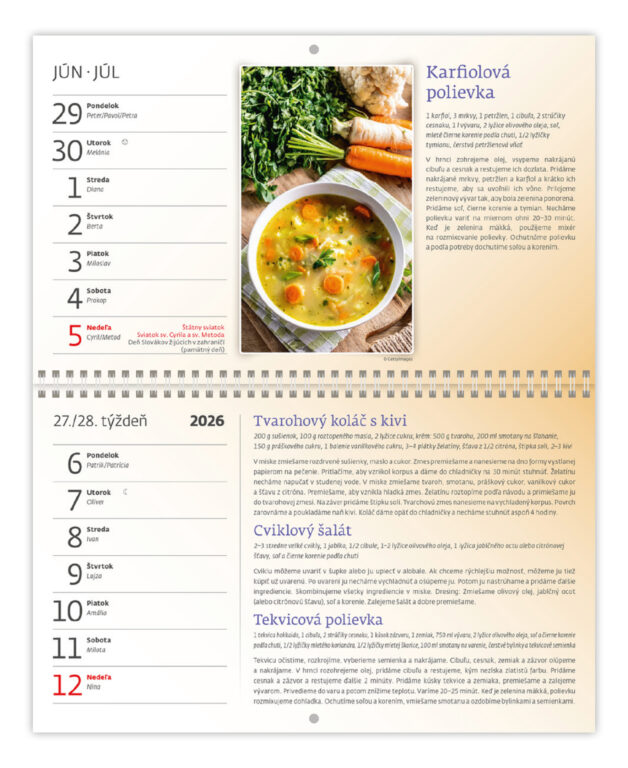 Formát kalendára: 22,6 x 13,9 cm Kalendárium: slovenské týždenné riadkové Počet strán kalendára: 58 + 2 Visiaci kalendár bez presahu na potlač