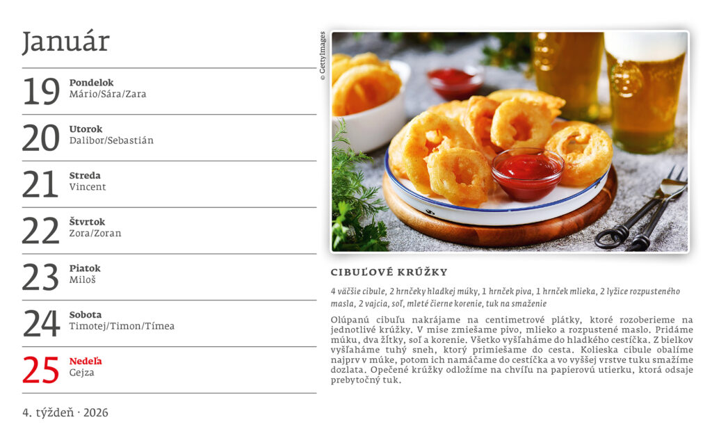 Formát kalendára: 22,6 x 13,9 cm Kalendárium: slovenské týždenné riadkové Počet strán kalendára: 58 + 2 Stojanček: s plným dnom Priestor na potlač: 22,6 x 3 cm