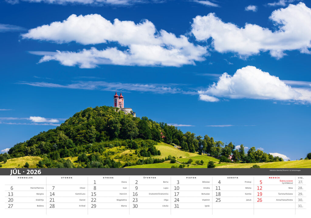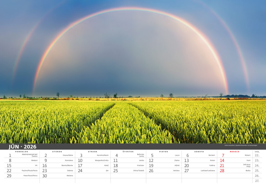Formát kalendára: 45 x 31,5 cm Kalendárium: slovenské mesačné menné Rozsah kalendára: 14 listov Twinová väzba Priestor na potlač: 45 x 7 cm Autor: Jozef Sádecký