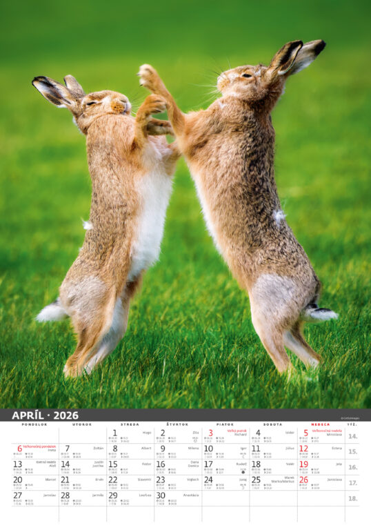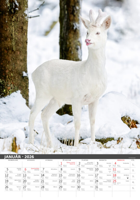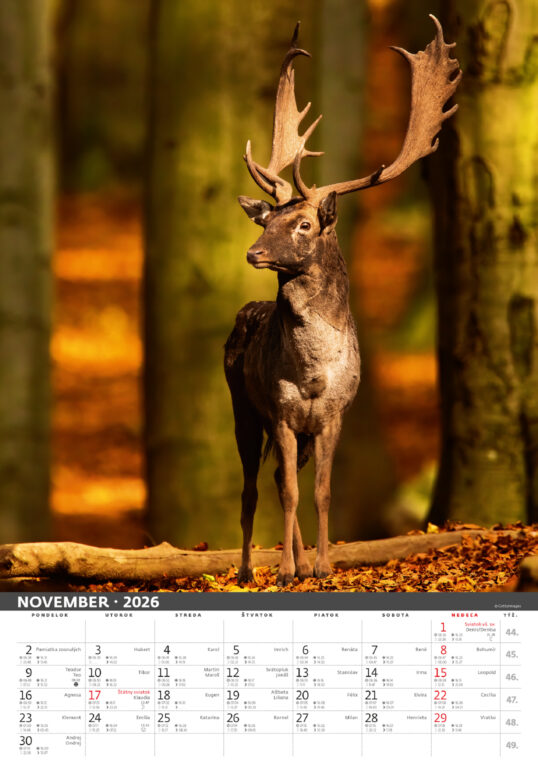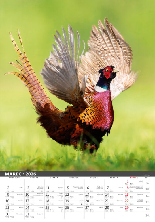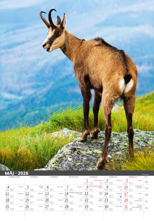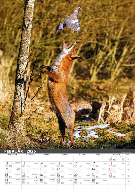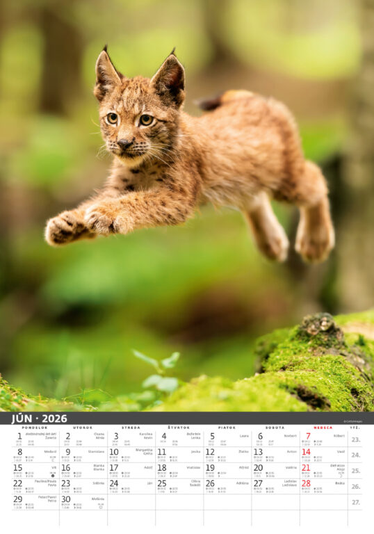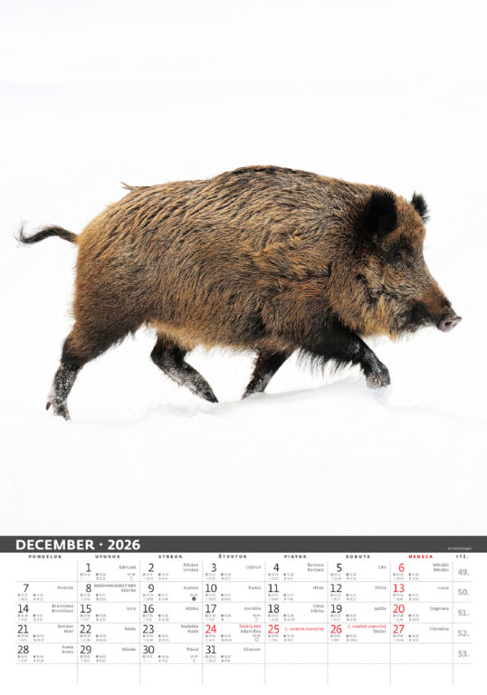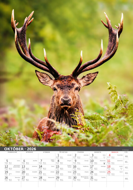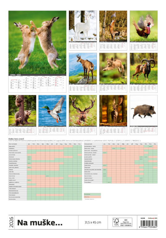 Formát kalendára: 31,5 x 45 cm Kalendárium: slovenské mesačné menné Rozsah kalendára: 14 listov Twinová väzba Priestor na potlač: 31,5 x 7 cm + doby lovu zveri, východy a západy slnka a mesiaca