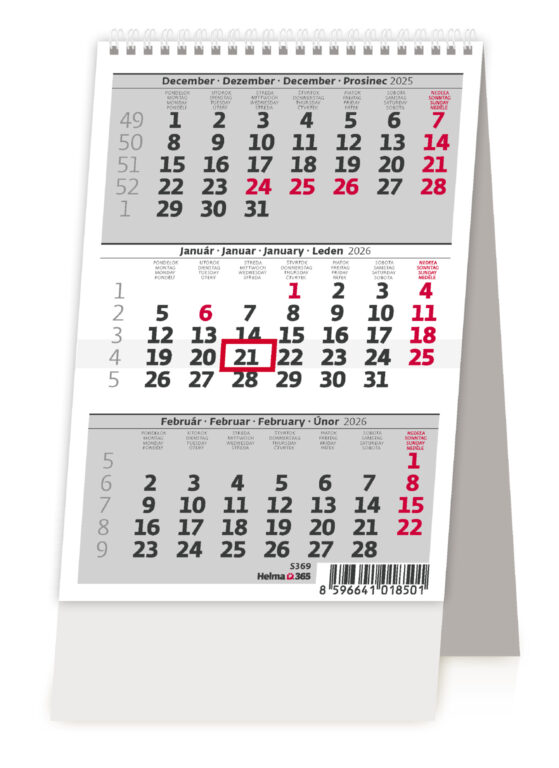 Formát kalendára: 11 x 16 cm Kalendárium: české/slovenské 3-mesačné kalendárium Počet strán kalendára: 12 (obojstranné) Stojanček: so zámkom Priestor na potlač: 11 x 3,5 cm