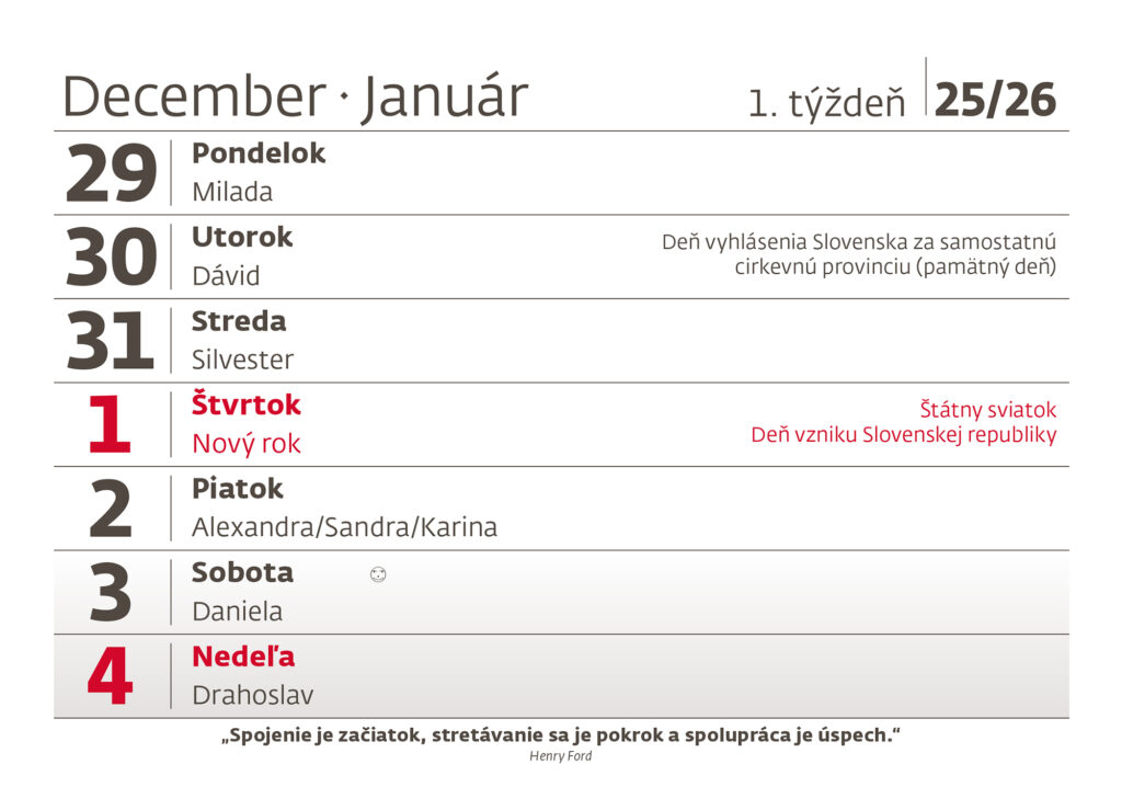 Slovenský týždenný kalendár s citátmi